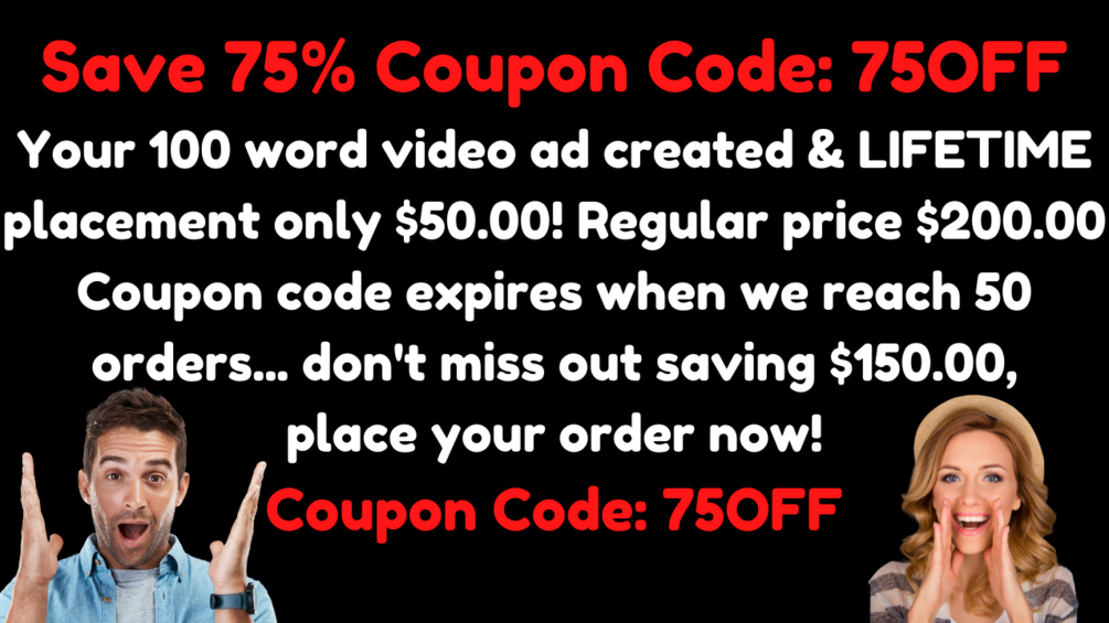 100 Words Video Ad Creation + Lifetime Placement In High Traffic Website! One-Time $200 Payment!